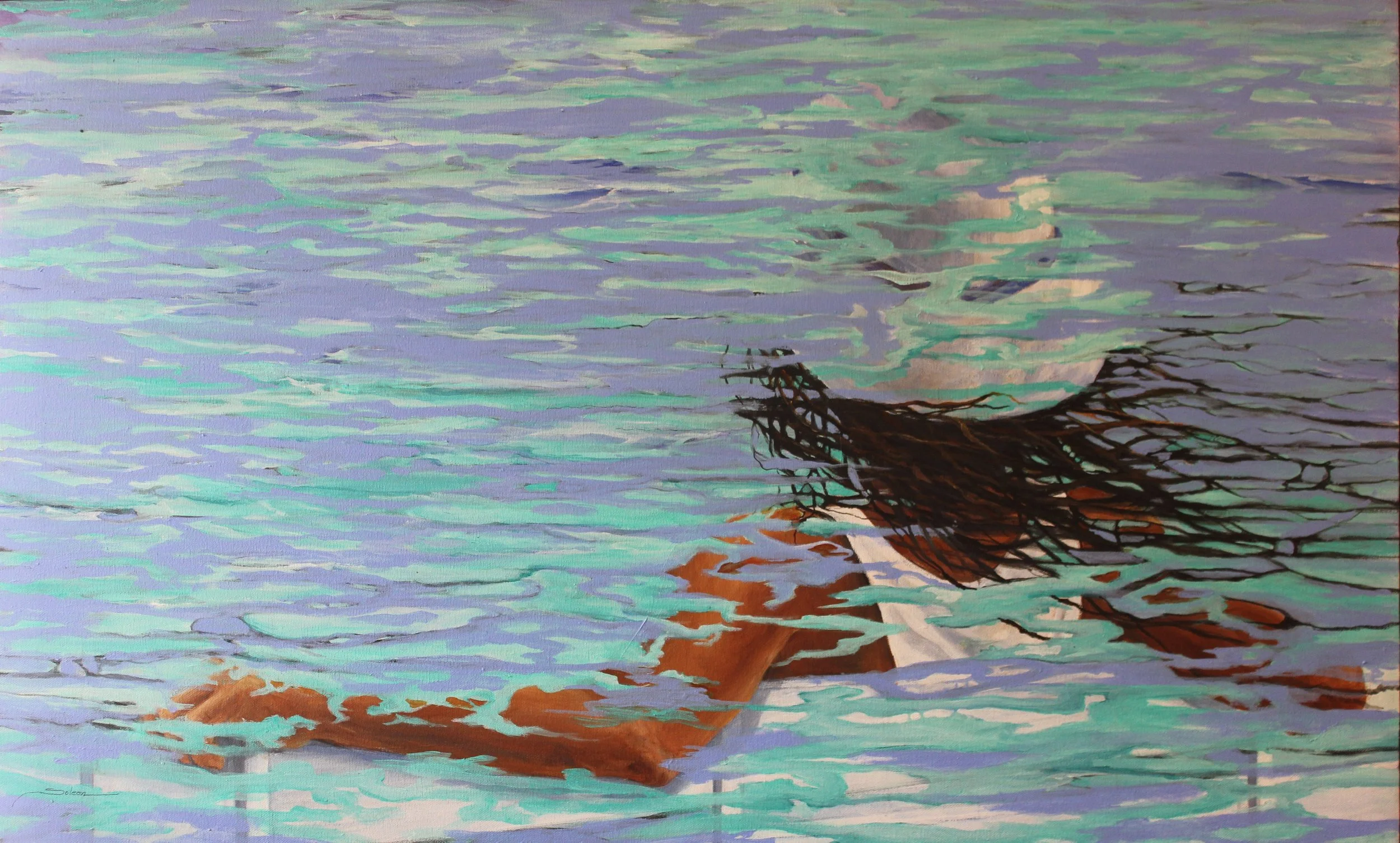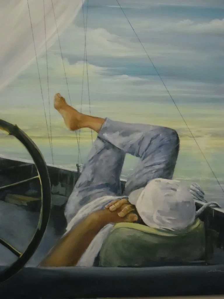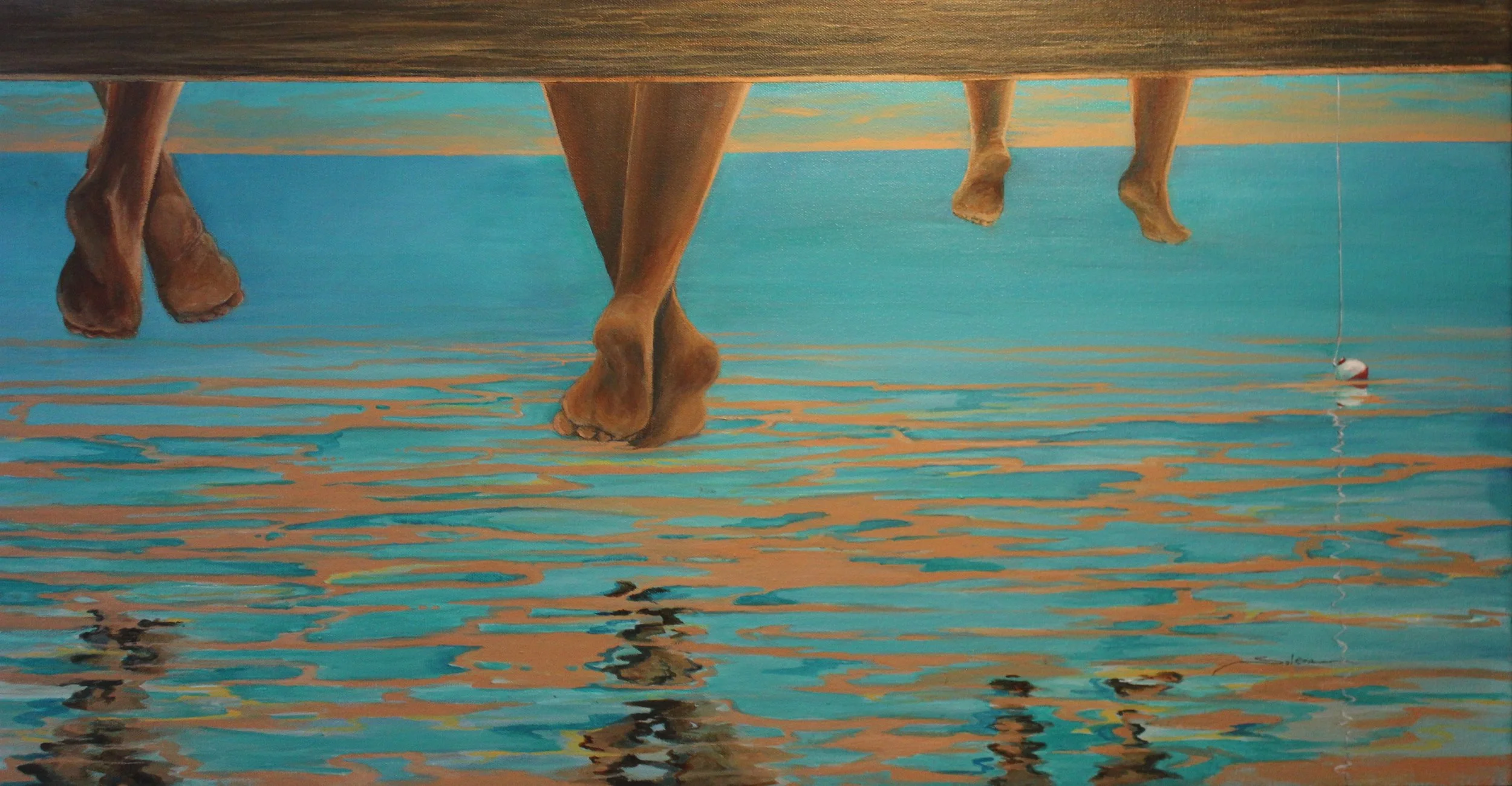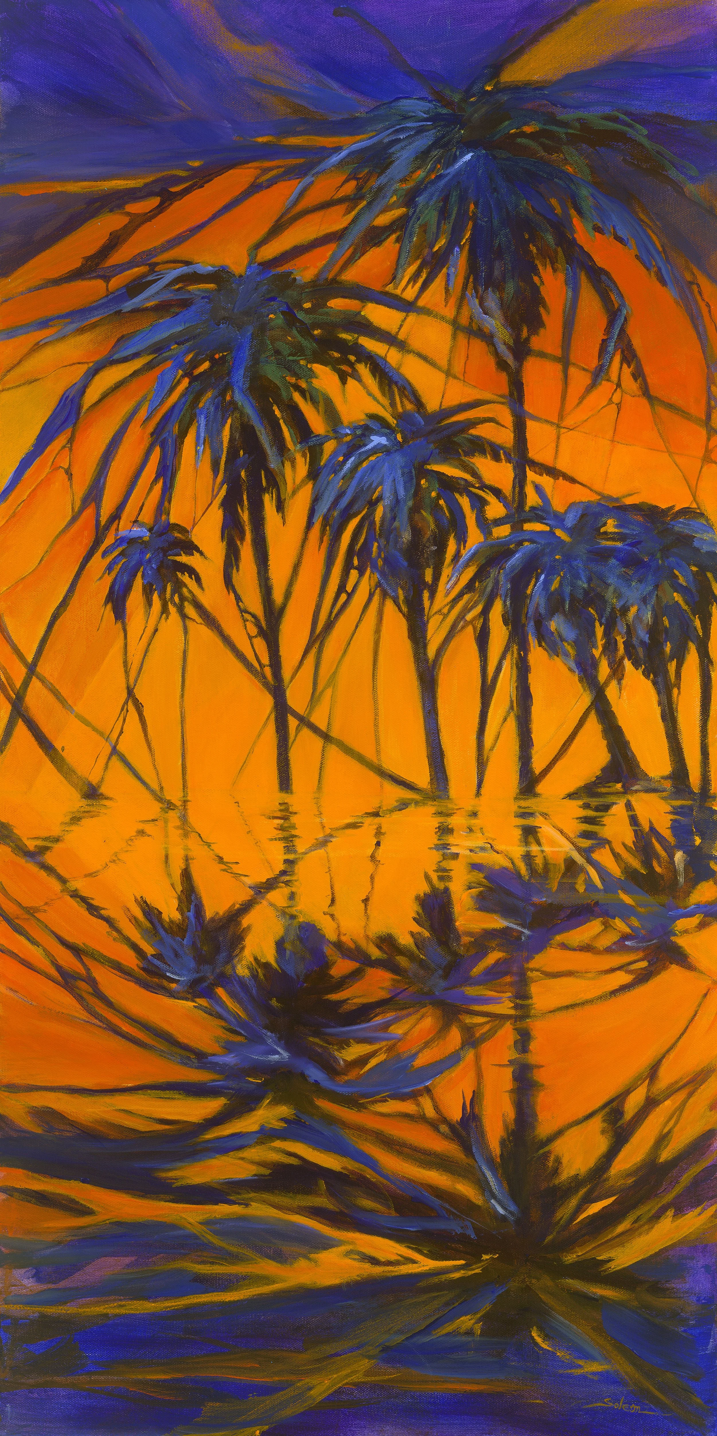Original painting is 18” x 36” unframed; 28” x 46” framed