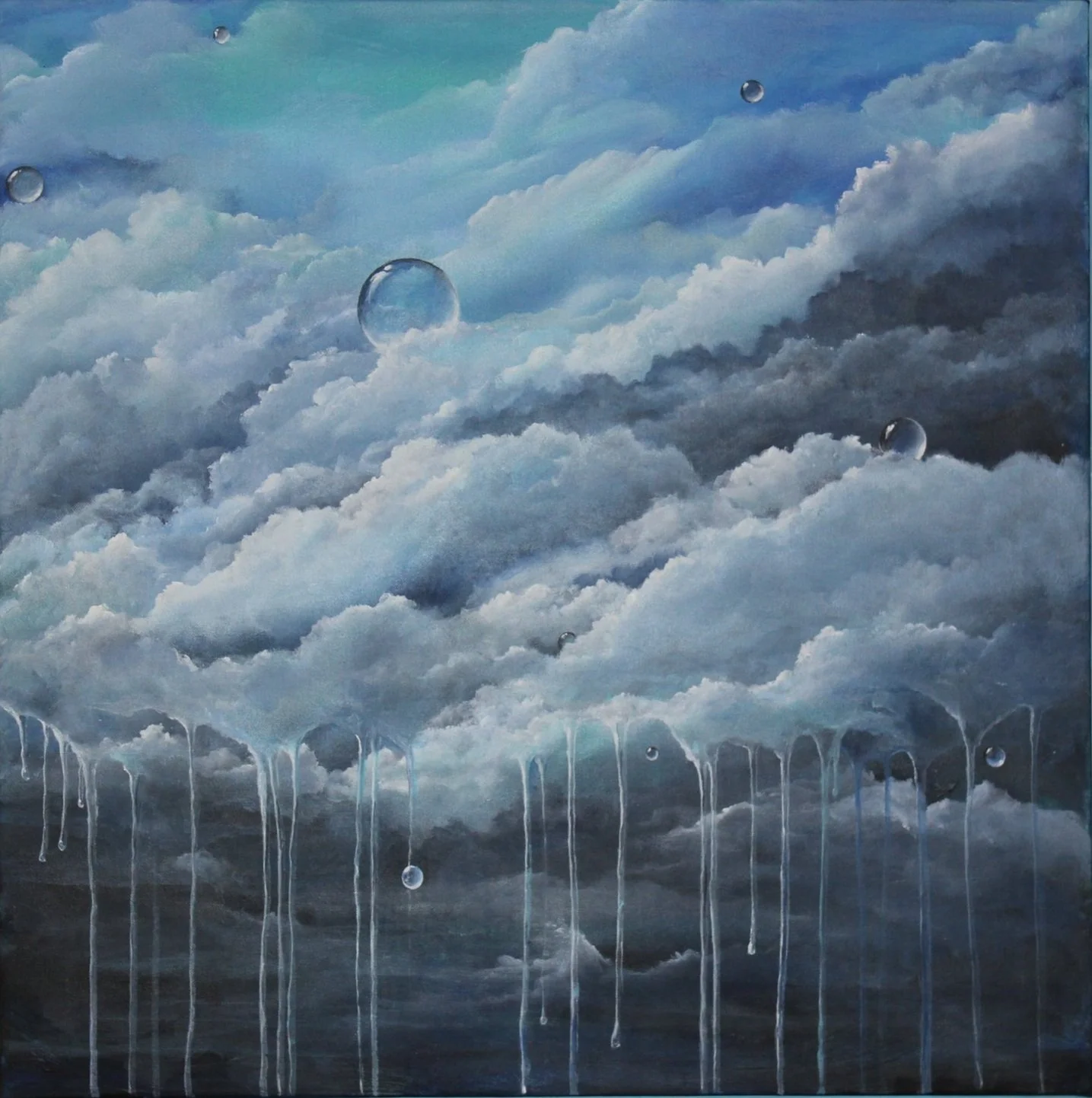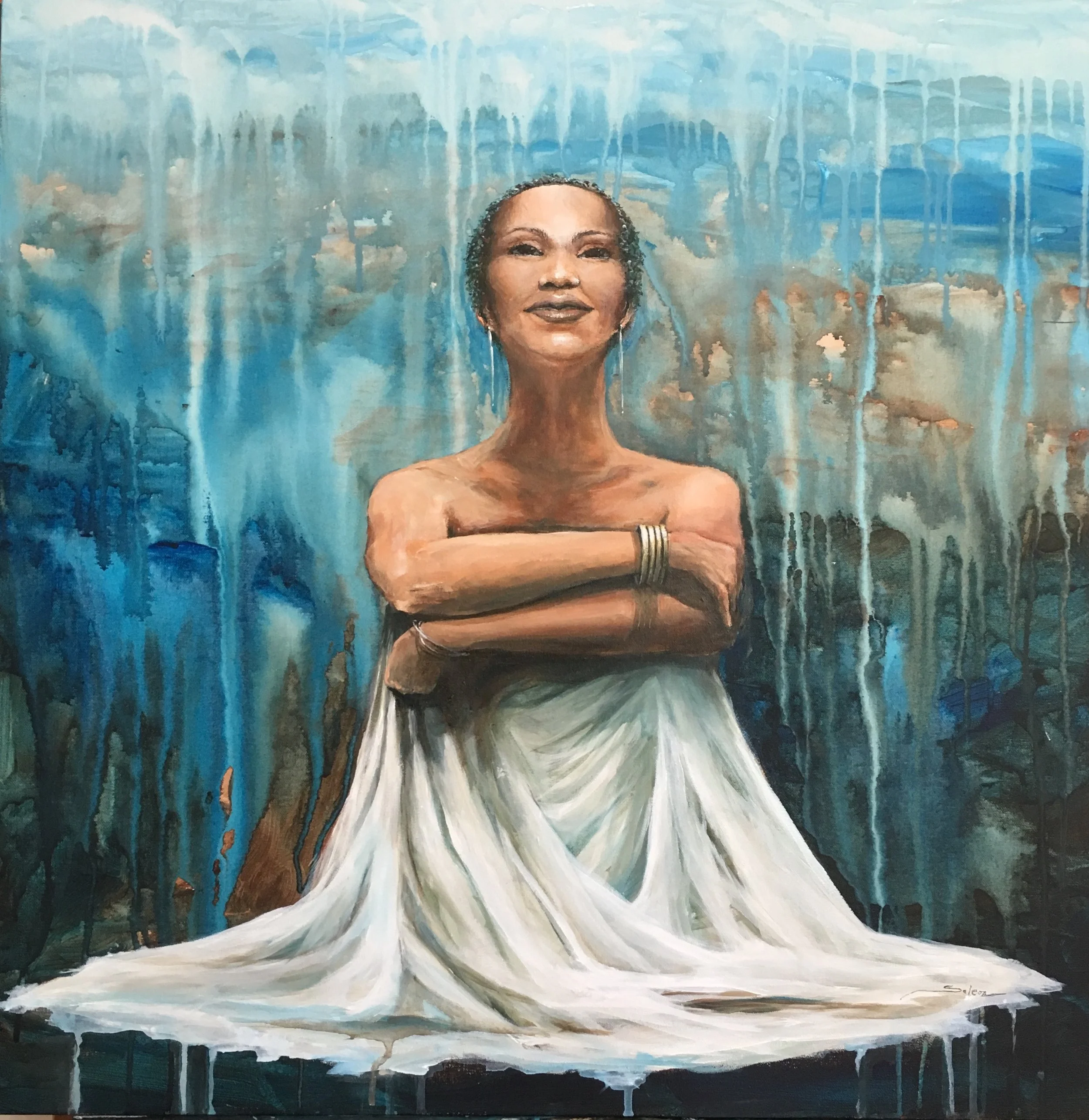 Original painting is 30” x 30” unframed; 40” x 40” framed