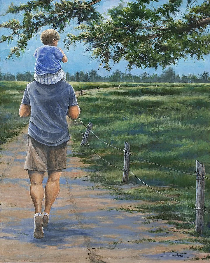Original painting is 24” x 30” unframed; 32” x 38” framed